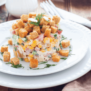 Салат с курицей и сухариками